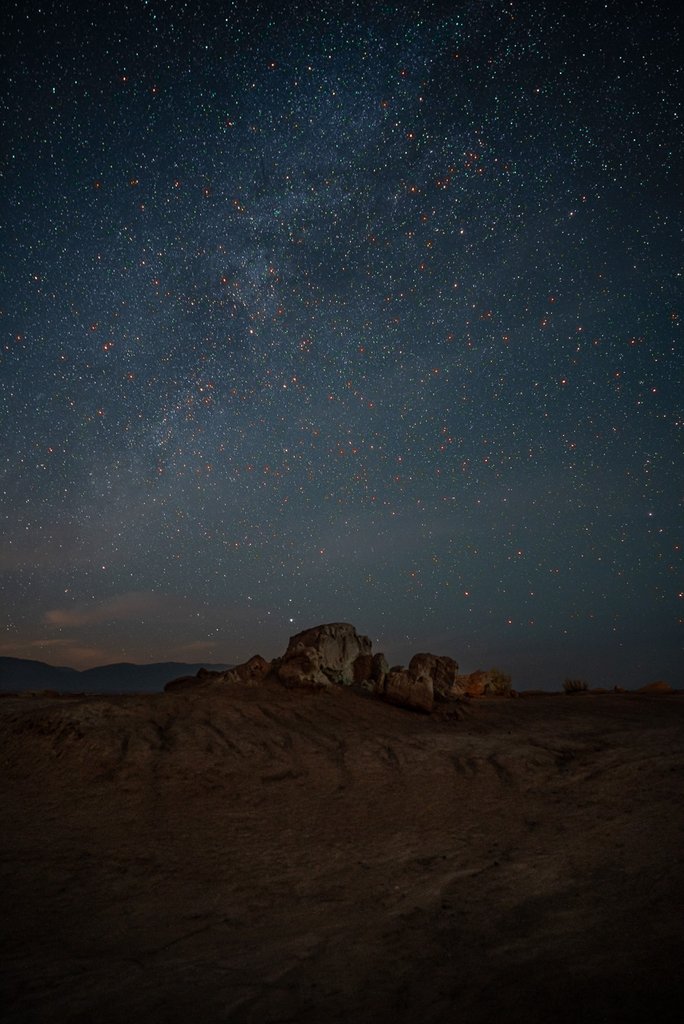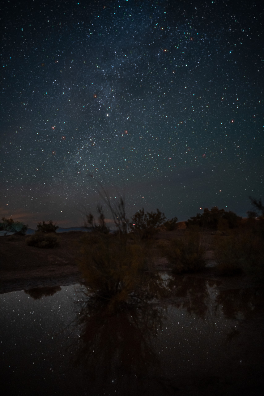 Gegen 19 Uhr ist es bereits zappen duster, also schnappe ich mein Stativ und mache mich auf den Weg, über die Straße direkt in die Wüste in Richtung der Berge.